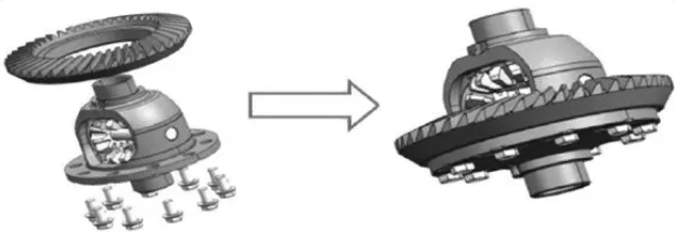 差速器廣泛使用于乘用車及商用車,是汽車減速器總成里面的一個重要組成部分,它提供動力傳動,保障汽車轉彎安全差速。傳統差速器殼體和主減速齒輪通過螺栓連接,這種傳統連接方式加工工序多,質量較大,成本較高,不符合汽車工業的發展趨勢。
