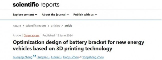 周口師范學院機械與電氣工程學院的張國慶博士在Scientific reports期刊發(fā)表了《Optimization design of battery bracket for new energy vehicles based on 3D printing technology》,在3D打印技術助力下,探究了新能源電動汽車電池組系統(tǒng)的性能強化潛能。