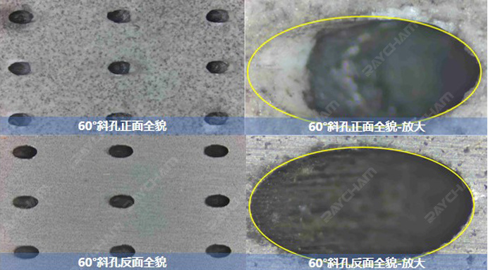 60°斜孔-帶涂層鎳基高溫合金加工結果觀察