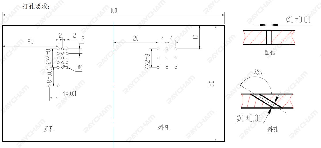 斜孔:共計 9 個,孔徑均按 1±0.01mm 控制。斜度及方向按上圖要求。