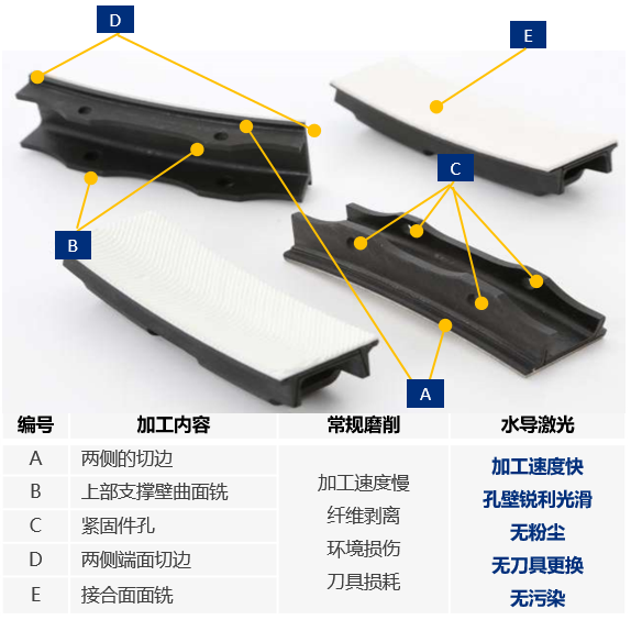 RJ505水導激光加工機床憑借其強大的激光能量和水冷卻特性,能夠有效避免過熱和氣孔等缺陷,提供更高的切割精度和加工質量,從而顯著提升汽車制造業中復合材料零部件的生產效率和質量。