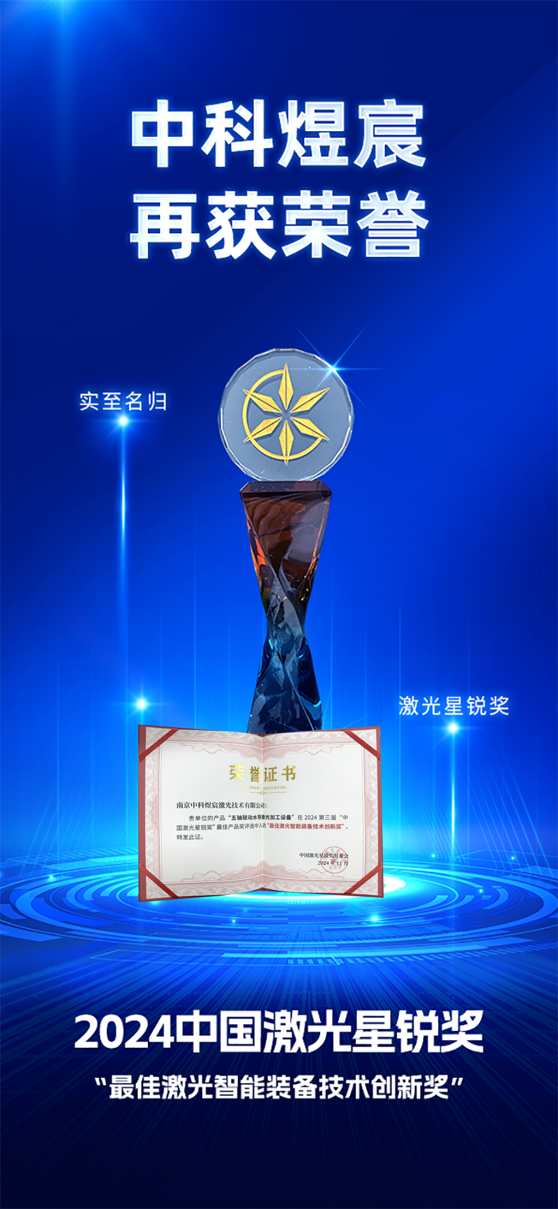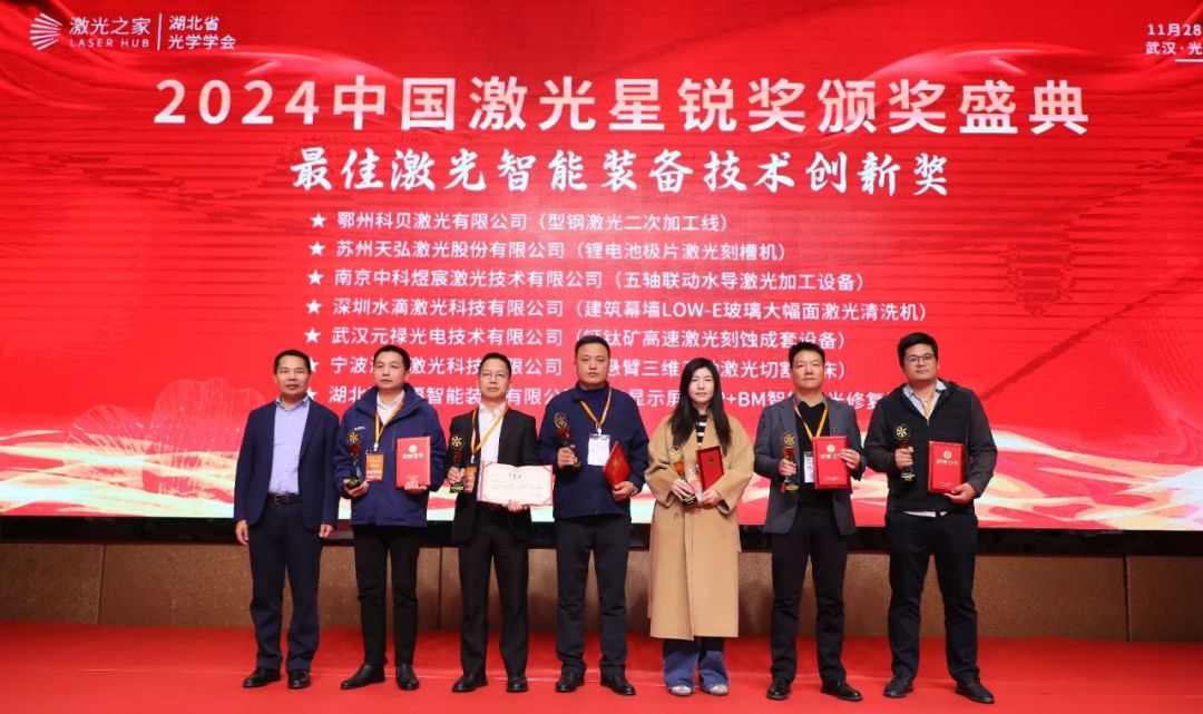 11月28日,2024中國激光星銳獎新鮮出爐,中科煜宸“五軸聯動水導激光加工設備”榮獲“最佳激光智能裝備技術創新獎”。