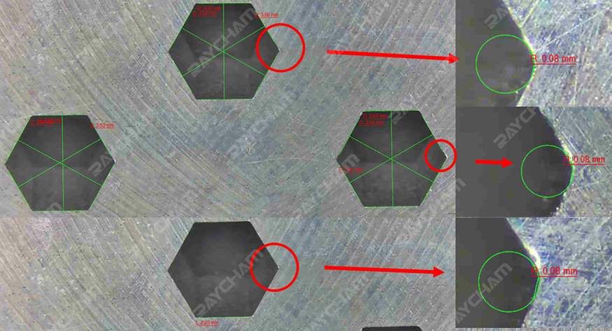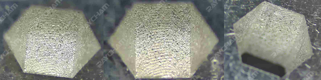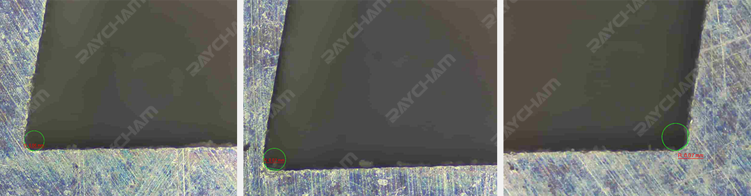 經(jīng)參數(shù)優(yōu)化,槽側(cè)壁表面粗糙度可以達到Ra1.2左右。相鄰面之間的過渡圓弧僅在0.06mm左右。切割表面無熱影響區(qū),重熔層可以保持在3μm以下。