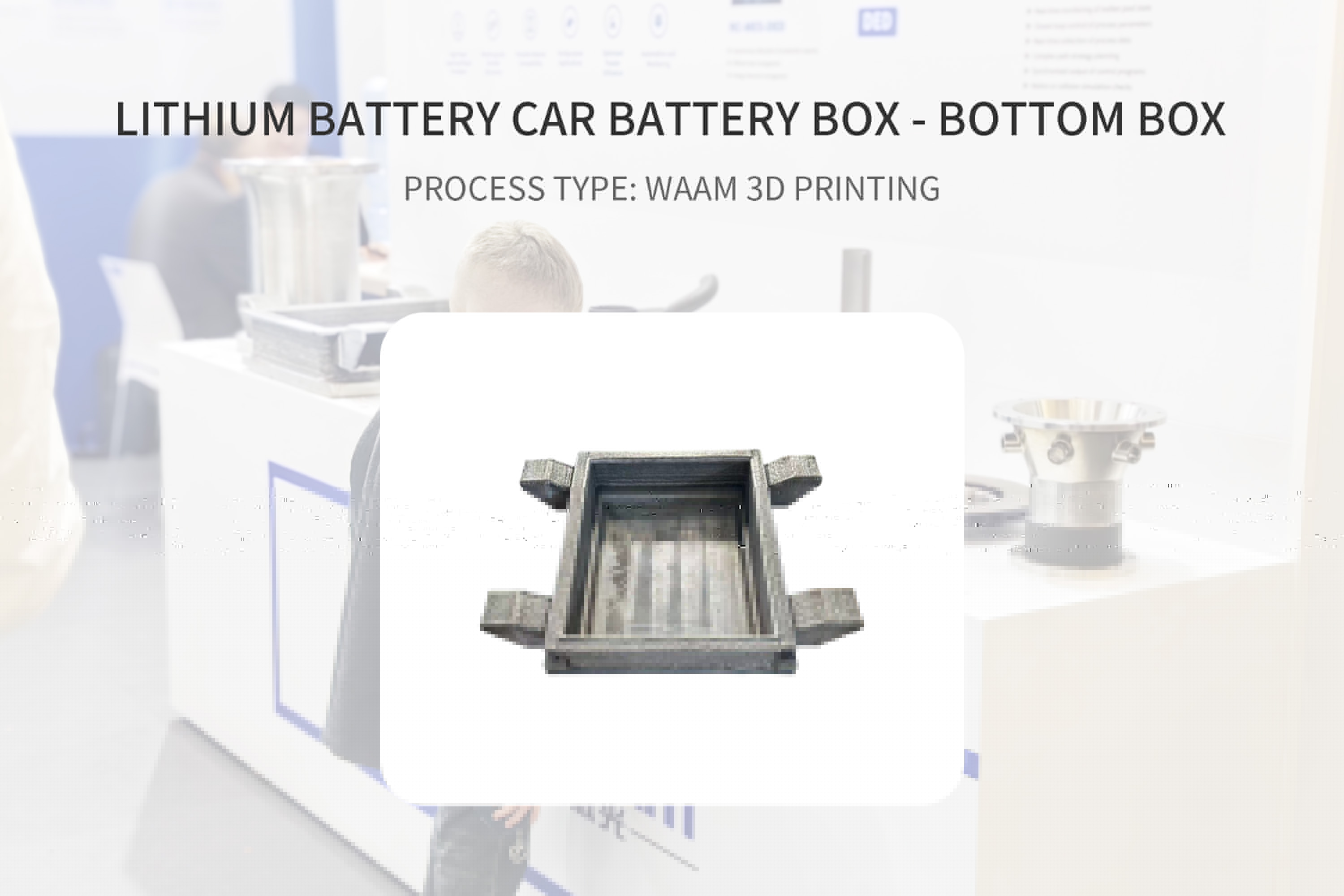 WAAM 3D printing improves the strength-to-weight ratio of battery bottom boxes, making them lighter while better able to withstand vibrations, shocks, and pressure during vehicle operation, thereby ensuring battery safety. It allows for the rapid design and printing of customized battery bottom boxes based on the space layout, battery shape, and performance requirements of different vehicle models, shortening production cycles and increasing manufacturing efficiency. Additionally, the high material utilization rate and low waste help reduce material costs.