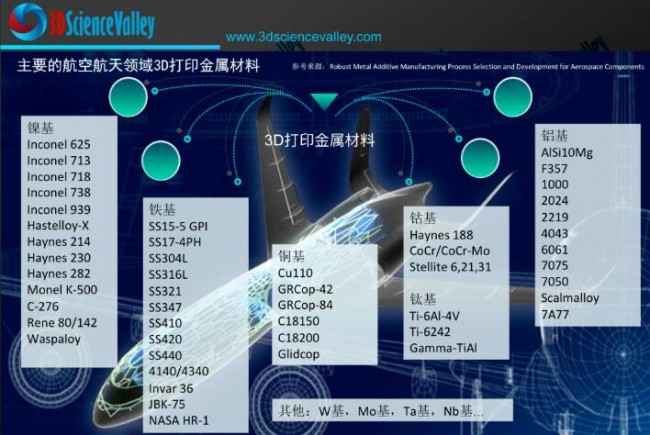 航空增材制造需求的金屬選擇已擴大到包括鋁合金、不銹鋼、鈦合金、鎳基和鐵基高溫合金、銅合金和耐火合金。